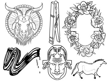 - Specifically referencing historically and locally iconographic artworks, these drawings, in the style of tattoo design, known as “flash”, are a commentary on contemporary and traditional collection behavior, both within the fine art context and in popular culture. They make a “tongue-in-cheek” jab at art speculation by referencing the iconographic and historical imagery in a format that is generally viewed as “not serious” by the institution of art but bring up questions about accessibility to art.