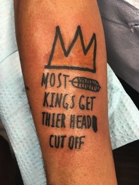 This project uses tattoos and the tattoo process to investigate how people collect, grasp, and express artistic value, or what is valuable to them about art. The term “skin in the game” refers to an action of investment (not just financial) where the party/investor puts forth actual capital into an endeavor with the hopes for a return on investment. The more the investor puts forth, the more ownership that investor has of the endeavor, but also, the more that investor has to lose. He/she is said to have “skin in the game”. This project plays on this phrase, tackling questions about the extent to which people actually value, support, and invest in art by way of consumption, using tattoos as a comparative measurement. Additionally, there is also a literal interpretation, as the project uses tattooing and the skin as a point of origin for this discussion about the “game”of art.