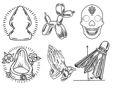 - The selection of available tattoo designs come from the historical and local iconographic “flash” discussed above, and is priced at a level far below the value of the actual/original artwork referenced, but whose valuation is comparable to what the average tattoo costs. This juxtaposition of unattainable, established historical iconography with a fringe practice, at the entry-level price points, forces consideration about how people support and collect art and the art-like.